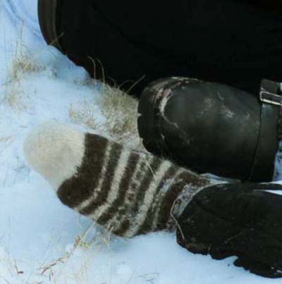 Штанина заправлена в носок.