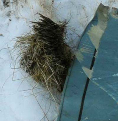 На левом боку замерзла жидкость. Что это за жидкость, и откуда она взялась на 30-40-градусном морозе, уточнять не будем.