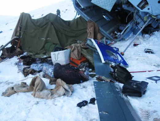 «Реквизит» недавно привезен. Вместе с «обломанными о скалы» лопастями – их еще не утащили на место, где они якобы «ломались» и якобы «кромсали людей». Перед лопастью мы видим кейс. Ближе, в тени – еще один, поменьше.