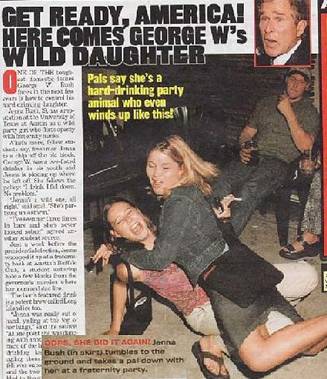 Скорее всего, это было просто «случайным совпадением», что перед тем, как получить сие смертоносное послание трусливого «мусульманского» диктатора, Нью-Йорк Пост опубликовала даже больше статей, описывающих пьянствующих дочерей Буша, чем это сделала бульварная газета Сан. Как это предлагается сделать в статье «Жертвы!», опубликованной по этому адресу в Интернете: http://www.newsgarden.org/columns/anthrax/anthraxtargets.shtml, если вы произведёте поиск на веб-сайте газеты Нью-Йорк Пост по ключевым словам, каковыми являются имена дочерей Буша, то вы получите следующие результаты (цитирую) [примечание переводчика: названия этих статей перевести на русский адекватным образом не представляется возможным по причине отсутствия подобных слов в русском языке, но можно обобщить, что все эти статьи были на тему пьянствующих дочерей Буша, выказывающих безобразное поведение на публике]: