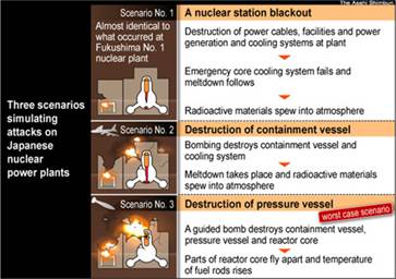 Три сценария симуляции военных атак на японские АЭС (1984); первый оказался идентичен тому, что в действительности произошло на Фукусиме-1. Похожие сценарии применимы к любым АЭС, включая российские, и землетрясение для них не обязательно.