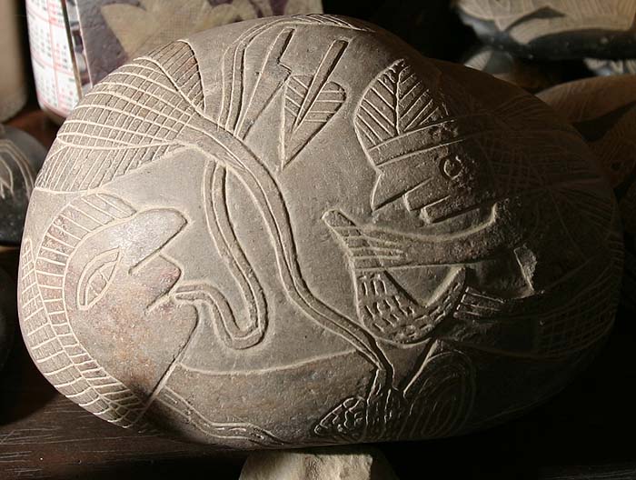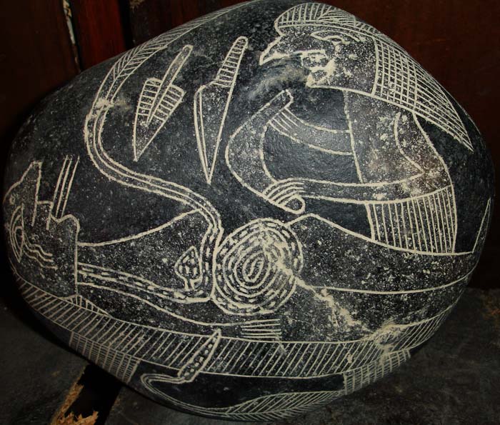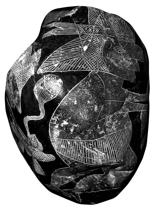 Хорошее знание анатомии человека древними врачевателями не вызывает сомнений. Примечательно также то, что создатели камней Ики сочли необходимым изобразить разные человеческие органы на отдельных камнях. В коллекции Кабреры есть несколько камней, в том числе, и очень крупных (до 80 см в диаметре), изображающих с анатомическими подробностями различные органы человеческого тела: сердце, легкие, желудок (Фото 84). Камень с изображением сердца можно было бы смело поставить в современный медицинский атлас, настолько подробно и детально сделан рисунок. Данные изображения еще раз подтверждают гипотезу об «энциклопедическом» характере комплекса камней Ики.