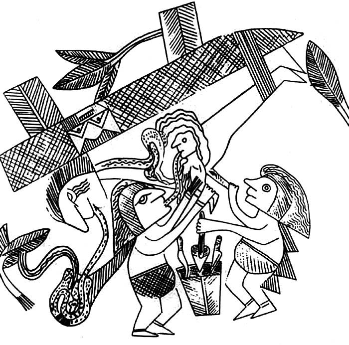 И еще одна интересная и интригующая деталь. В собрании доктора Кабреры есть один крупный камень, изображающий операцию на мозге (Фото XIX). Вот только данная сцена выглядит малопонятно. Два хирурга, вскрыв черепную коробку пациента, достают из нее небольших змей (или червей?), поддевая их кончиком ножа или просто руками. Голова пациента буквально забита такими змеями. И еще одна крупная змея изображена лежащей под хирургической скамьей. Такие изображения уже встречались на описанных раньше камнях со сценами аналогичной операции. Эти рисунки змей явно имеют определенное символическое значение, но каких-либо конкретных соображений на этот счет я привести не могу. Если речь идет об изображении в виде змеи болезни головного мозга, тогда зачем изображать ту же змею лежащей под скамьей. Тем не менее, на изображениях пациентов после трансплантации их мозг показан в виде волнистых линий.