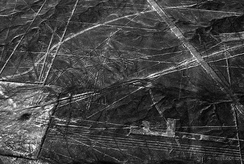 Ни одна из трех десятков гипотез о природе этих рисунков не может дать убедительного ответа ни на один из важнейших вопросов: кто, когда, как и зачем нанес это безумное количество изображений? Естественно, подразумевается, что все эти работы выполнялись вручную, с использованием простых инструментов и приспособлений. Изображения в Наске выполнены, как кажется на первый взгляд, достаточно простым способом, они вырыты в поверхности пустынного плато. Т.е. и рисунки, и линии, и полосы суть просто канавки в песочно-гравийном грунте. Их глубина варьируется от 10 до 30 см. А вот ширина отдельных полос может достигать 100 м, а в исключительном случае – даже 200 м. А длина некоторых линии достигает 8-10 км! Современные геодезические методы не позволяют провести на пересеченной местности прямую линию длиной до 8 км так, чтобы отклонение не превышало 0,1%. А древние создатели рисунков Наски, кто бы они ни были, это делали. Более того, прямые линии, тянущиеся на протяжении километров, просто игнорируют складки рельефа. Они спускаются в овраги, поднимаются на вершины холмов, и при этом совершенно не нарушается их геометрическая правильность и параллельность боковых границ.