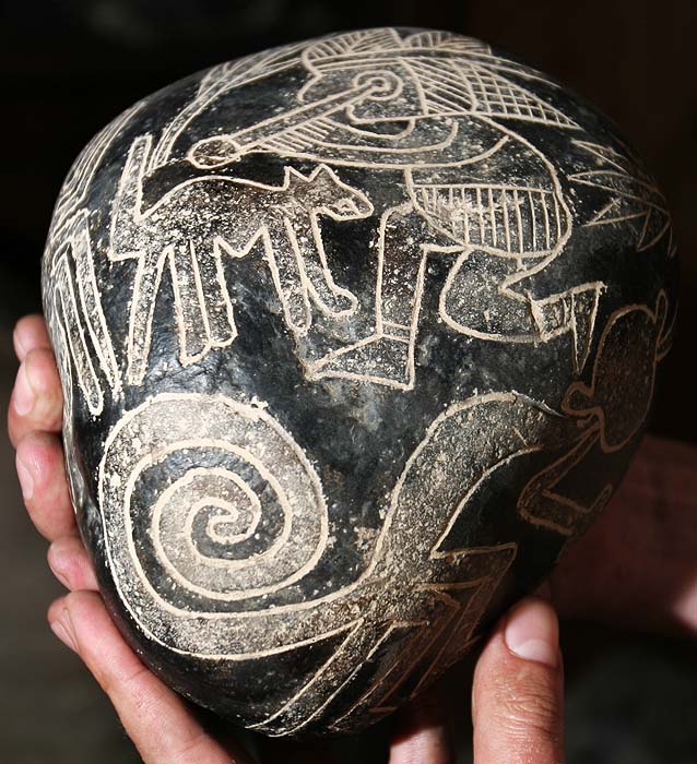 В коллекции доктора Кабреры имеется более пятидесяти камней, на которых изображены широко известные рисунки плато Наска. Это камни в большинстве своем небольших размеров. Только некоторые из них достигают в диаметре 50 см. Следует сразу подчеркнуть, что на этих камнях изображены только рисунки Наска, никаких намеков на другие типы изображений, имеющихся на данном плато (геометрические фигуры, полосы, линии) здесь нет.
