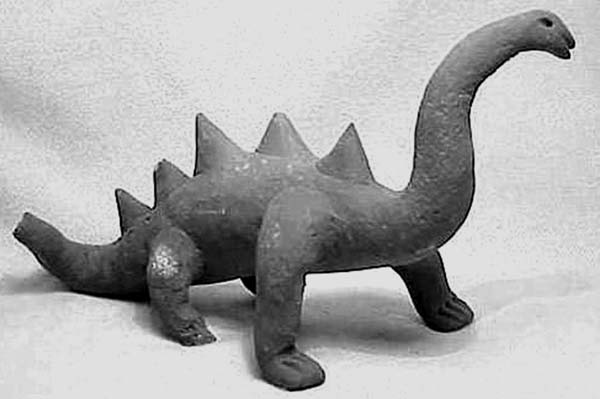 Еще одна общая черта – скульптуры зауроподовых ящеров со спинными пластинами (Фото 138). Как уже упоминалось в начале книги, только в начале 90-х годов прошлого века палеонтологи обнаружили свидетельства образования таких кожных спинных образований у таких видов динозавров. А коллекция Вольдемара Джульсруда была сформирована почти за полвека до этого открытия. Что это: неуемная фантазия местных «фальсификаторов» или их гениальная прозорливость? Или, все-таки, веское свидетельство в пользу подлинности обеих коллекций.