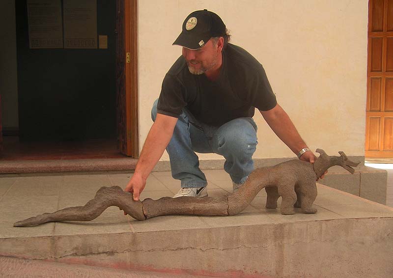 Все эти исследования в лабораторных условиях проходили без участия самого Вольдемара Джульсруда. Дело в том, что еще в 1958 году его скобяной магазин был ограблен, а сам Джульсруд получил серьезную черепно-мозговую травму. Родственники перевезли его в соседний штат в г.Леон. Здесь Вольдемар Джульсруд и скончался в 1964 году. Таким образом после 1958 года его коллекция оставалась в старом доме в Акамбаро. Наследники Волдемара не продолжили его деятельность Скорее наоборот. К середине 80-х гг. из коллекции пропало сотни, если не тысячи вещей. Прежде всего, это были наиболее искусно выполненные скульптурные композиции и наиболее крупные скульптуры. Предполагается, что большинство вещей наследники Джульсруда либо подарили либо продали зажиточным мексиканцам для украшения интерьеров. На сегодняшний день в музее Джульсруда сохранилась лишь одна крупная скульптура, изображающая динозавра, и имеющая в длину 150 см (Фото 144).