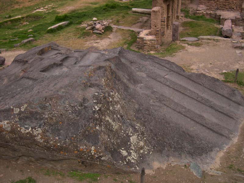 Давайте допустим, что создателям камней Ики был известен секрет размягчения поверхности каменных пород до состояния пластилина. Тогда им не надо было рубить и тесать гранит, они работали с его поверхностью как с глиной, легко придавая нужную им форму при помощи простейших инструментов. При изучении древних архитектурных памятников Перу, таких как Саксайуаман, Куско, Мачу-Пикчу и других, не может не вызывать изумление техника обработки гранитных глыб весом в сотни килограмм. Здесь широко применялась так называемая «полигональная» техника кладки каменных блоков. Блок гранита геометрической формы мог иметь несколько сложных профильных углов и пазов, которые без какого-либо зазора входили в соответствующие пазы соседних блоков (Фото 17). При этом поверхности блоков являются сглаженными, а боковые грани часто имеют фаску. Так же невозможно себе представить, как древние индейцы при помощи каменных орудий покрывали сотни квадратных метров гранитных скал геометрически правильными вырезами, нишами, желобами, превращая поверхность камня в многоуровневую геометрическую композицию, целевое предназначение которой не поддается определению (Фото 18).
