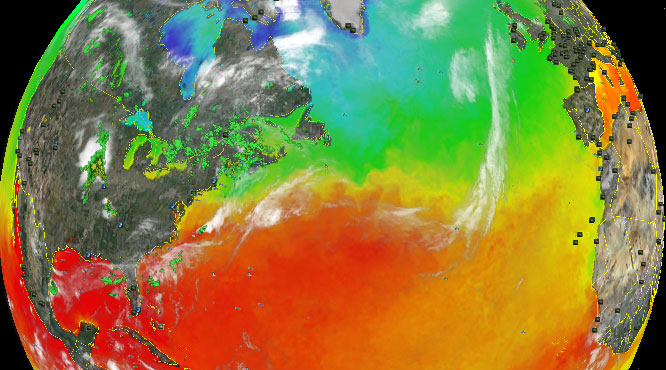 Термокарты, снятые в режиме онлайн с сервера GoogleEarth 25-го и 27-го июня сего года также говорят о том, что «тёплый рукав» вод Гольфстрима не поднимается севернее Испании.