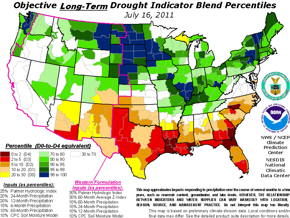 Мексиканский залив обеспечивает определяющее влияние на климат центральных и восточных районов США, поэтому все описываемые ниже явления так или иначе связаны с ним. Как и минувшая зима 2010-2011, май этого года был необычайно холодным на трёх четвертях территории Соединённых Штатов (см. карту выше). Снег, скопившийся в горах, в результате этого долго не таял. Этот фактор в течение весны способствовал последующему наводнению.
