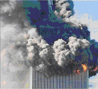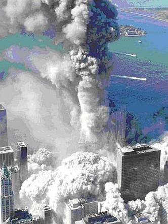 Второй «самолёт» террористов за мгновение до того как он [даже не сбавив скорости] пробьёт толстый двустенный стальной периметр и без остатка исчезнет внутри Южной Башни ВТЦ.