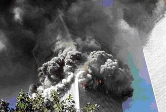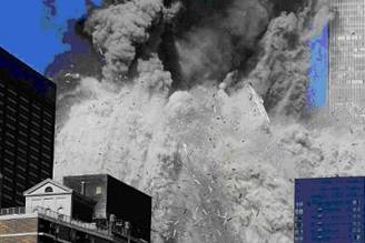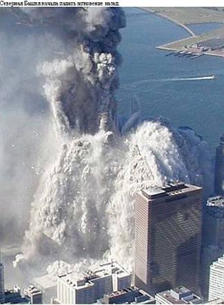 Видео (снятое с трёх разных точек) падения Северной Башни Всемирного Торгового Центра. На этом видео очень хорошо видно, что неповреждённая верхушка башни неожиданно стала падать вниз, практически не встречая на своём пути какого бы то ни было сопротивления — будто бы под ней были не обломки стальных конструкций, а мелкодисперсный порошок, который мог оказать сопротивления не больше чем просто воздух. В сущности, так оно и было — верхушка башни здесь падает со скоростью, равной скорости свободного падения.