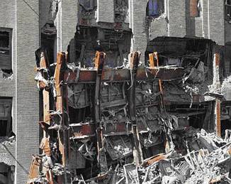 Считать, что алюминиевые Боинги-767 и вправду могли пробить те толстые двустенные стальные периметры, что показаны на фотографиях выше, есть то же самое, что верить, что законы физики решили ни с того ни с сего взять выходной в одиннадцатый день месяца сентября две тысячи первого года от Рождества Христова…