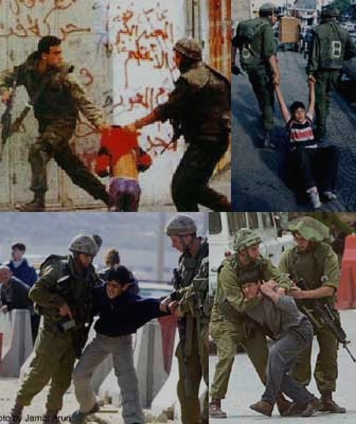Палестинская девушка-активист своим телом бесстрашно прикрывает мирных демонстрантов, в которых целятся израильские солдаты (с отм. 0:53). Палестинский школьник, которого берут на прицел, ставят к стенке и заставляют задирать одежду и выворачивать свой ранец. И его убитые сверстники на фоне Конвенции о правах ребёнка. Что может противопоставить танку, врывающему в город или деревню этот палестинский мальчик? Свою жизнь?