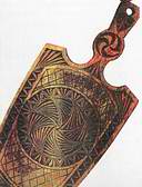 На фото можно увидеть свастичные символы даже на резной разделочной доске (справа).