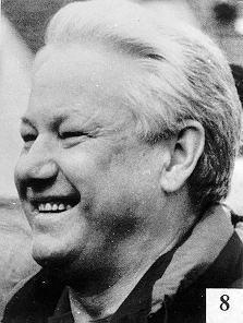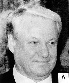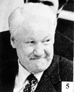 Подчеркиваю. ЦРУ веников не вяжет. Двойников Ельцина оно сделало хорошо. Дело усугубляется и тем, что истинный образ Ельцина мы уже забыли. Двойники вошли в образ, они хорошо копируют и мимику, и голос Ельцина, у них отрезаны пальцы на левой руке. (Правда, почему-то забыли нанести шрам на подбородок). Распознать их можно только в те мгновения, когда они забываются и становятся сами собой. Особенно коварна в этом деле фотография, которая фиксирует образ в сотые доли секунды. Вот смотрите. На фото 5 двойник Ельцина сжал губы в улыбке и скосил глаза влево.