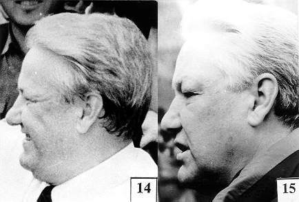 У Ельцина была более округлая голова (фото 14), а у его двойника она приплюснута с затылка. У Ельцина выдвинута вперед («волевая») челюсть. Но главное не это. У них разные уши.
