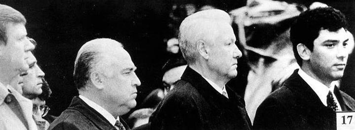 Но все же надо особенно ловить моменты, когда клоунов, играющих Ельцина, показывают в профиль. Сначала дадим пару фотографий в профиль самого Ельцина (фото 14, 15).